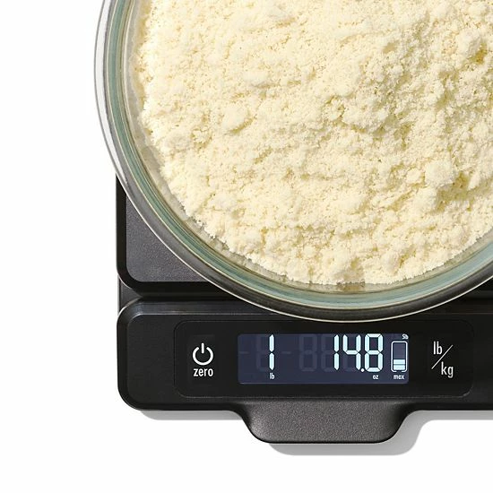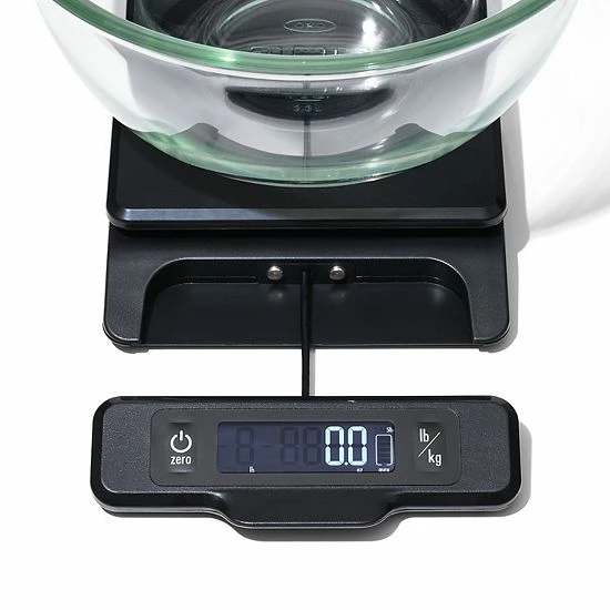 The OXO Good Grips food scale is perfect for portioning meat, produce, spices and more. Weigh items directly on the platform, on a plate or in a bowl.