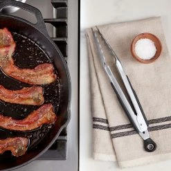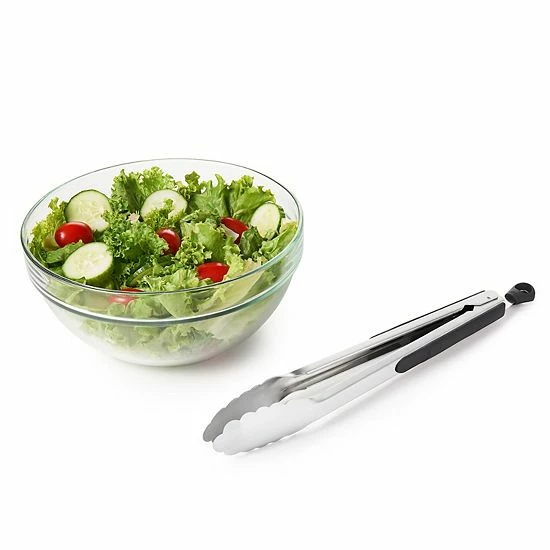 These must-have OXO Good Grips locking tongs feature a sturdy stainless steel construction with soft, nonslip handles and thumb rests for comfortable control and operation.
