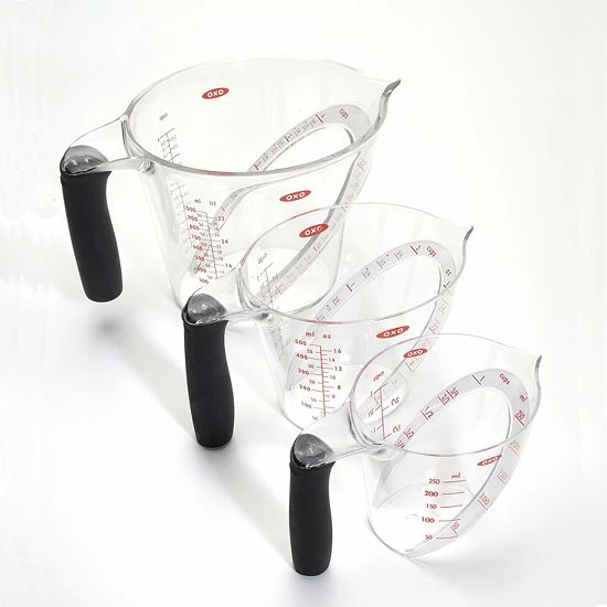 Food prep is fast and easy with this OXO Good Grips measuring cup set. Each cup features a handy angled surface that lets you conveniently read measurements from above. For more kitchen tools and gadgets, shop our entire selection of OXO Good Grips products in stores and online at Kohls.com.