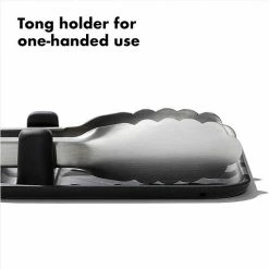- Features special prongs designed to hold unlocked tongs for one-handed use