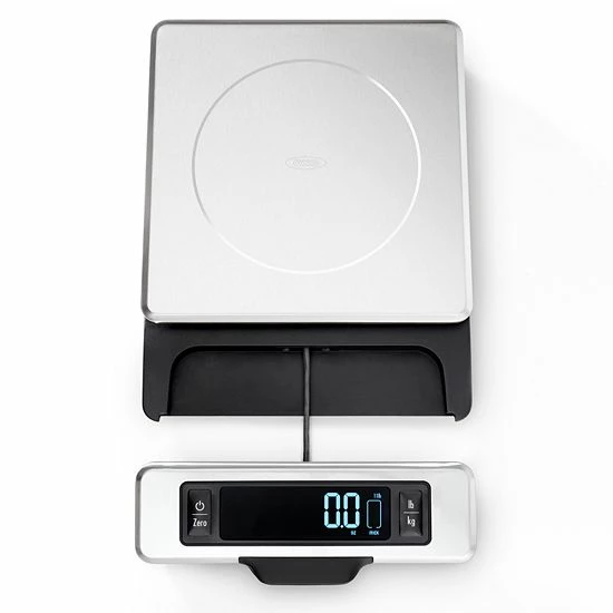 The user-friendly OXO Good Grips Food Scale with Pull-Out Display is ideal for weighing ingredients like baking essentials, meat, produce, herbs, spices and more.
