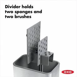 - Use divider to hold two sponges and brushes, or remove divider to use as open caddy
