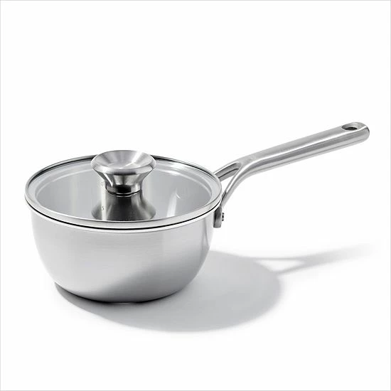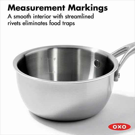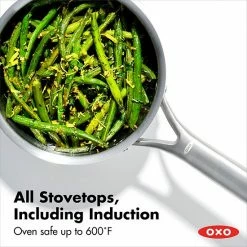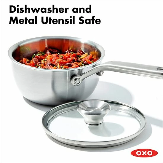 A must-have for any kitchen, this OXO Mira Tri-Ply Stainless Steel chef pan is crafted with two stainless steel layers and a heat-radiant aluminum core to deliver fast and even cooking.