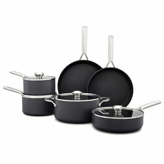- Scratch-resistant hard-anodized aluminum bodies heat quickly and evenly