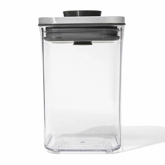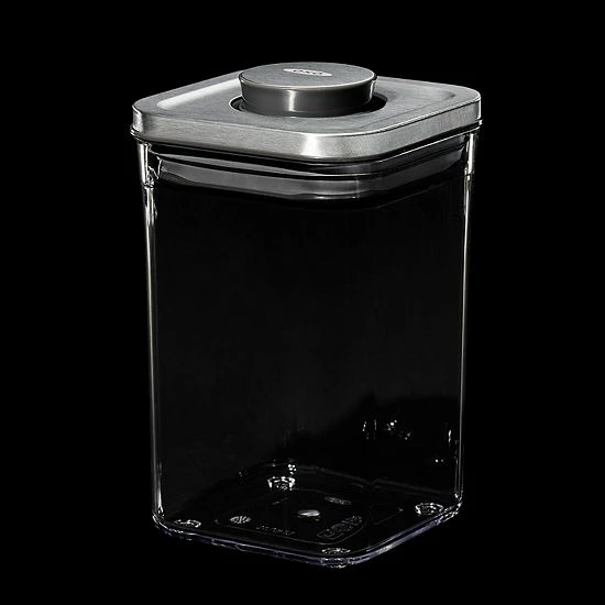The OXO SteeL POP Container is an elevated and space-efficient solution for keeping dry foods fresh and kitchens organized. Push the button on the stainless steel lid to create an airtight seal and press it again to pop it up for easy opening.