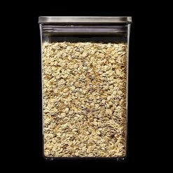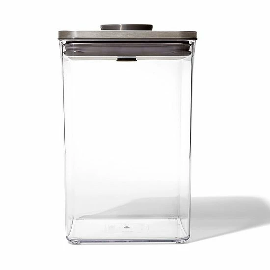 The OXO SteeL POP Container is an elevated and space-efficient solution for keeping dry foods fresh and kitchens organized. Push the button on the stainless steel lid to create an airtight seal and press it again to pop it up for easy opening.